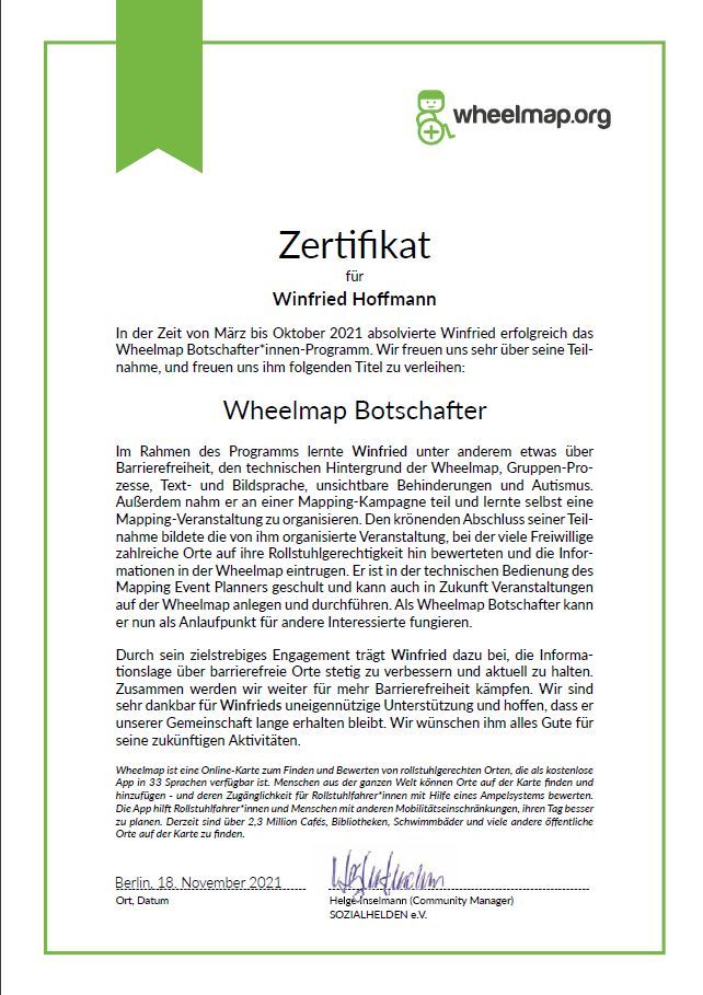 Barriere-Scout und Wheelmap-Botschafter