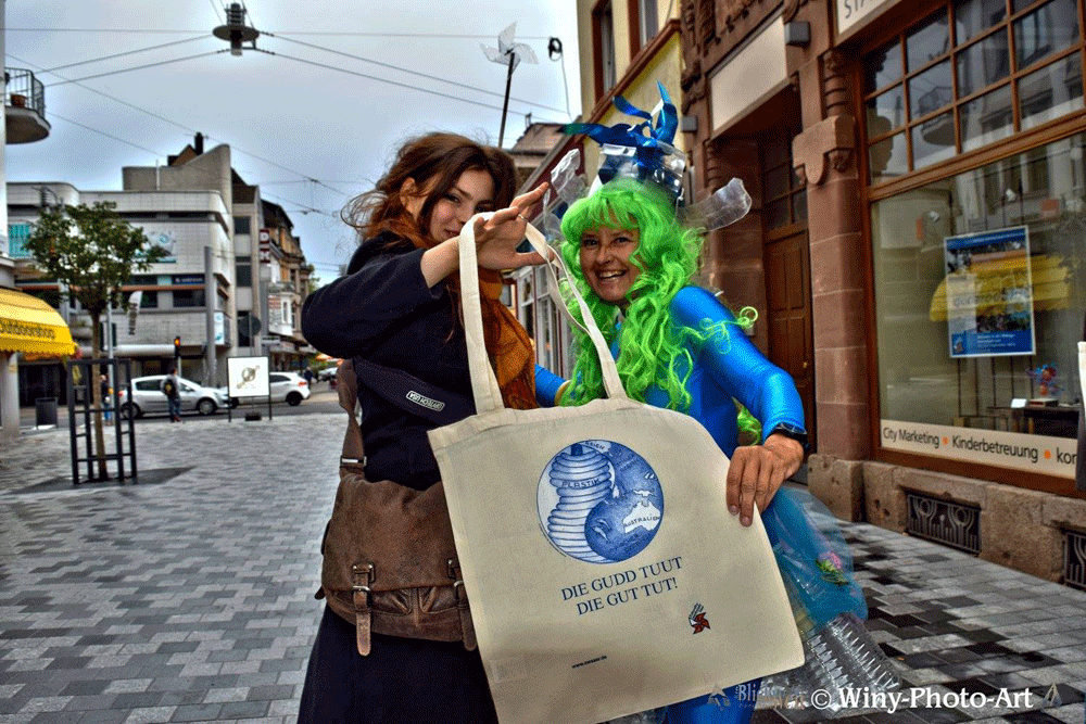 ● eine Ausstellung in verschiedenen Schaufenstern der Stadt mit plastikfreien