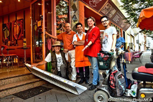 Die erste Wheelramp-Leihrampe wurde am 03.08.2017, im Beisein von Schirmherr Dr. Rudi Peter, Bashar Shawa und der Sponsorin Sabine Nowaczyk gemeinsam mit dem Projektleiter Winfried Hoffmann an Angelo Russo, dem Inhaber vom Eiscafé Vulcano in Dillingen/Saar übergeben: