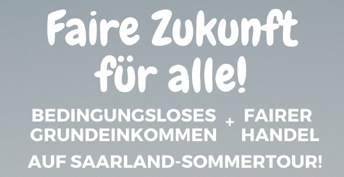 Genau dafür, dass diese wichtige – uns alle betreffende Angelegenheit – vom Europaparlament angemessen behandelt wird, stehen wir bereit, um ab dem 10. Juli 2021 und den Folgeterminen in insgesamt elf Gemeinden im Saarland digitale und analoge Unterschriften für die Europäische Bürgerinitiative (EBI) für ein Bedingungsloses Grundeinkommen (www.ebi-grundeinkommen.de) zu sammeln. Aber da natürlich keine*r etwas unterschreibt, wenn er nicht ganz genau weiß, worum es überhaupt geht, werden wir auch mit ganz viel Energie und guter Laune und spannenden Formaten über das BGE, Fairen Handel und weitere Zukunftsthemen informieren und diskutieren.