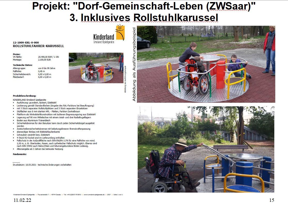Heute haben wir einen Förderantrag für eine Rollstuhlschaukel und ein Rollstuhlkarussell laut Kostenvoranschläge für unseren Spielplatz am Dorfgemeinschaftshaus in Niedaltdorf eingereicht.