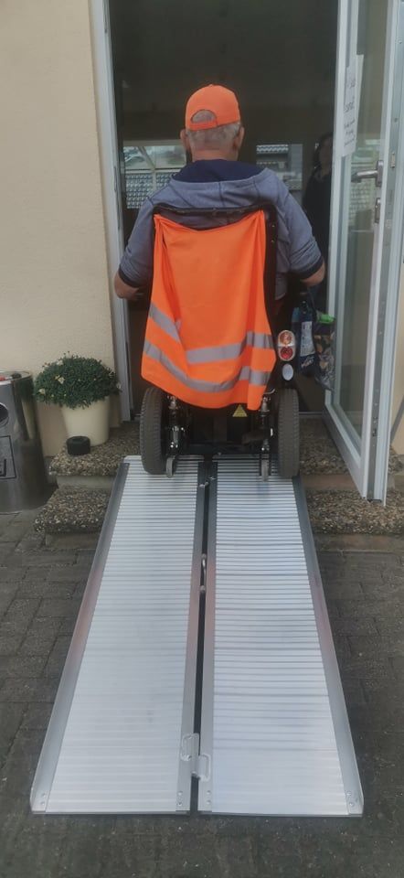 Nachdem wir die Inhaber darauf ansprachen, sagten sie uns, das hier öfter Rollstuhlfahrer zu Besuch sind und sie eine Behelfsrampe haben. Da diese Rampe aber zu schwer und ohne Überfahrschutz ist, boten wir eine Wheelramp aus unserem Projekt Barrierefreieres Leben (ZWSaar) an.
