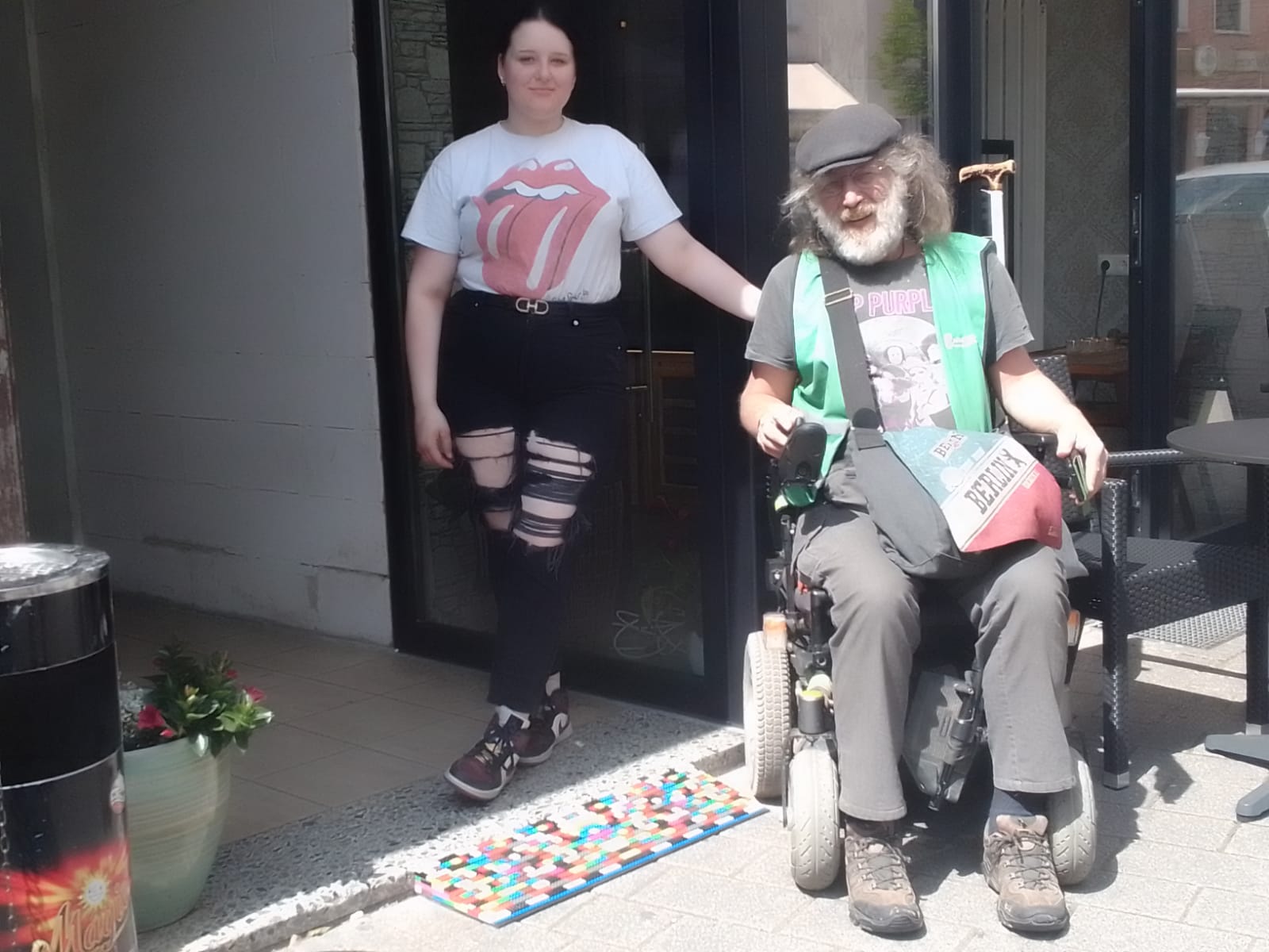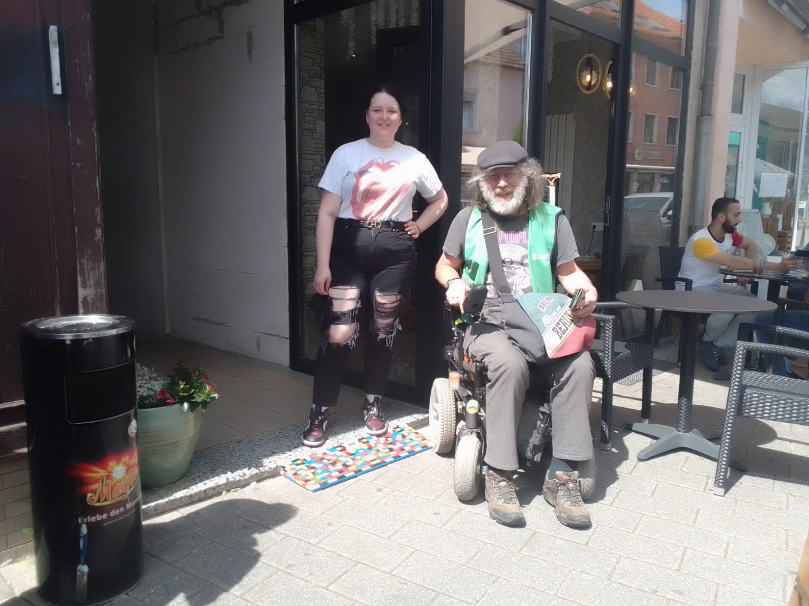 Übergabe unserer vierzehnten Rollstuhlrampe aus Klemmbausteinen, an die Dillinger Tagesbar in der Hüttenwerkstraße am Gleisdreieck in Dillingen/Saar.