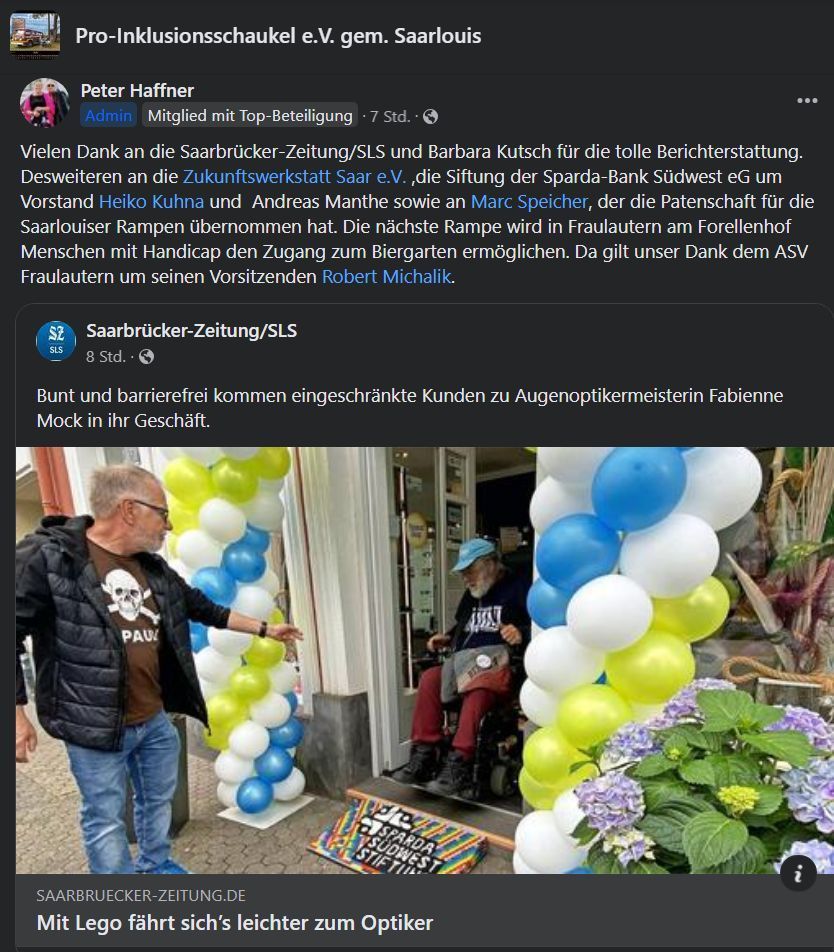 Pro-Inkluisonsschaukel Saarlouis gehen nach Saarlouis, sowie die 22. Rampe für