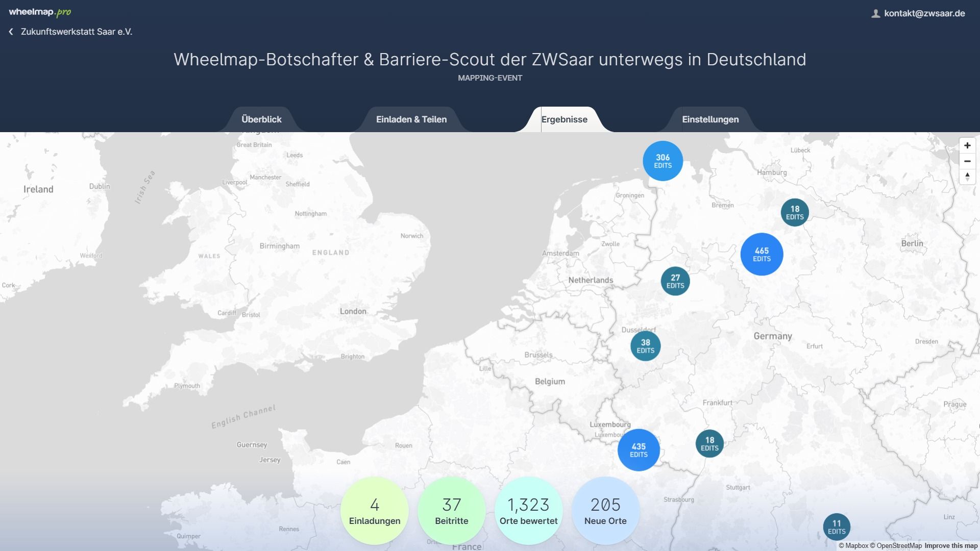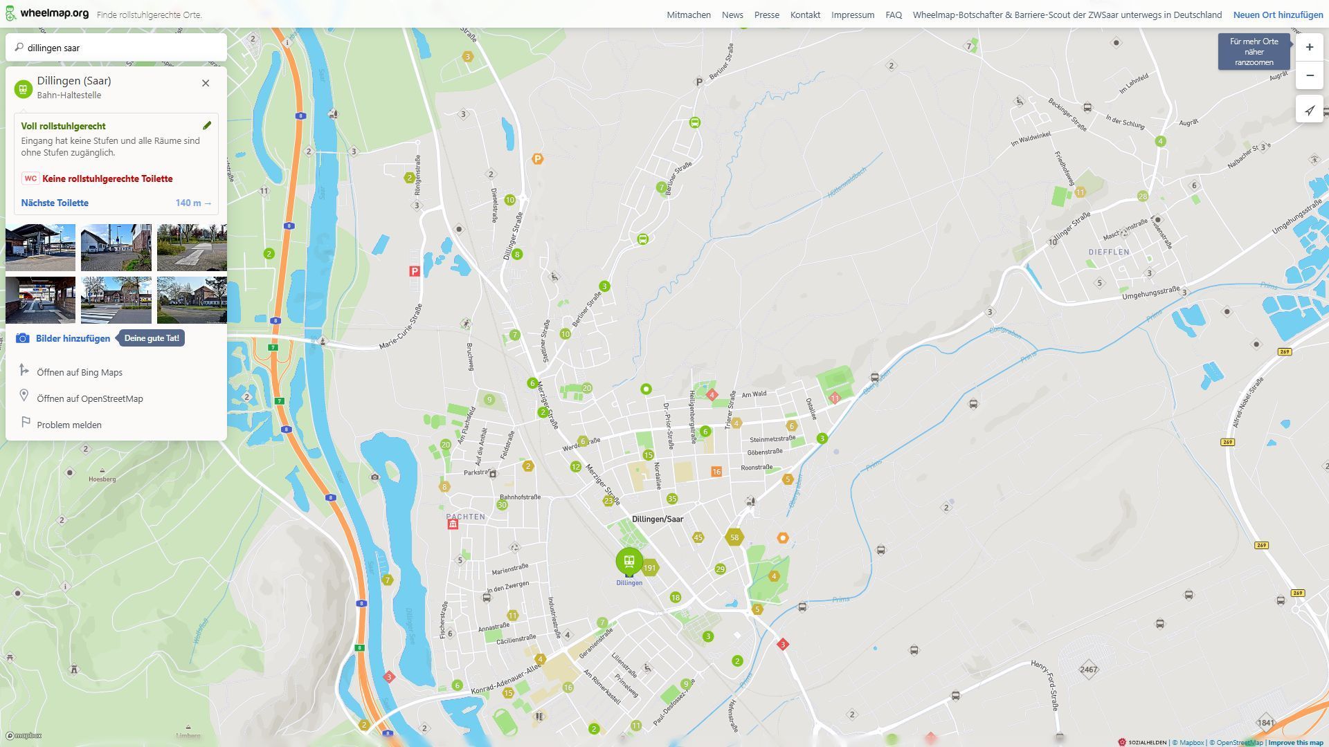 Die Einträge auf der Wheelmap-App und der ZWSaar e.V Homepage erfolgen zeitnah.