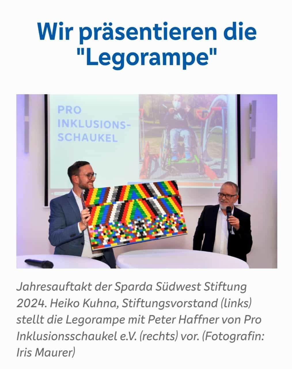 Rampen-Kooperation Pro-Inklusionsschaukel Saarlouis und die Übergabe der Rampe Nr.18 durch Peter Haffner an Sparda Südwest Stiftung.