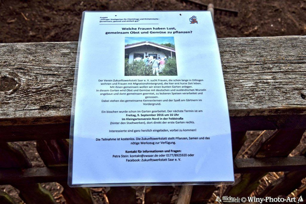 Interkulturelle Gartenanlage in einer Parzelle des Kleingartenverein Dillingen Nord alsvorrangiges Angebot für deutsche und syrische Frauen mit Beginn im Herbst 2016 und weiterer Fortsetzung...