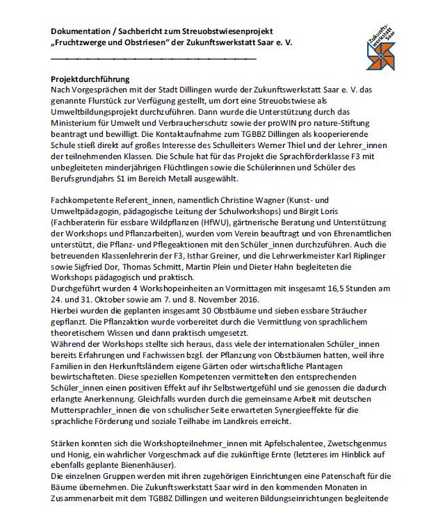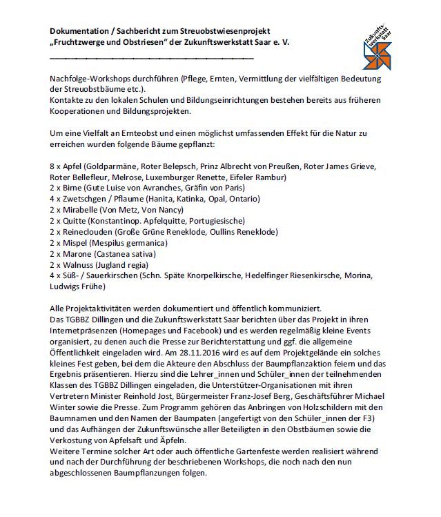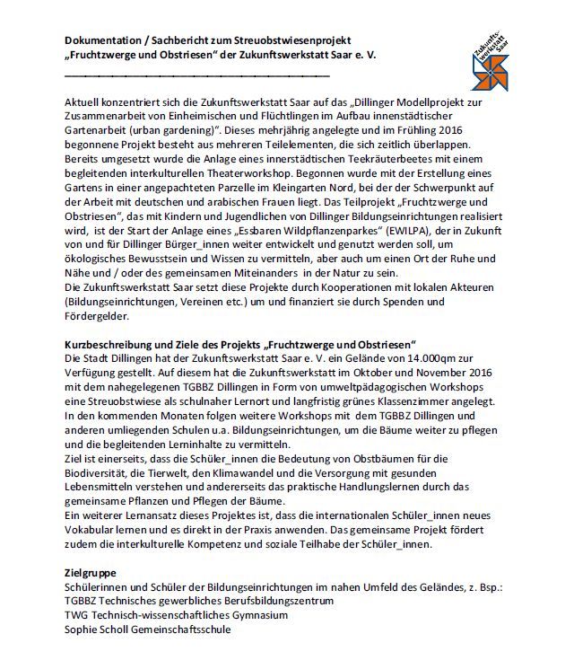 Anlage eines großen essbaren Wildpflanzenparkes (EWILPA), der mit dem Teilprojekt"Fruchtzwerge und Obstriesen" zum Jahresende 2016 startet.