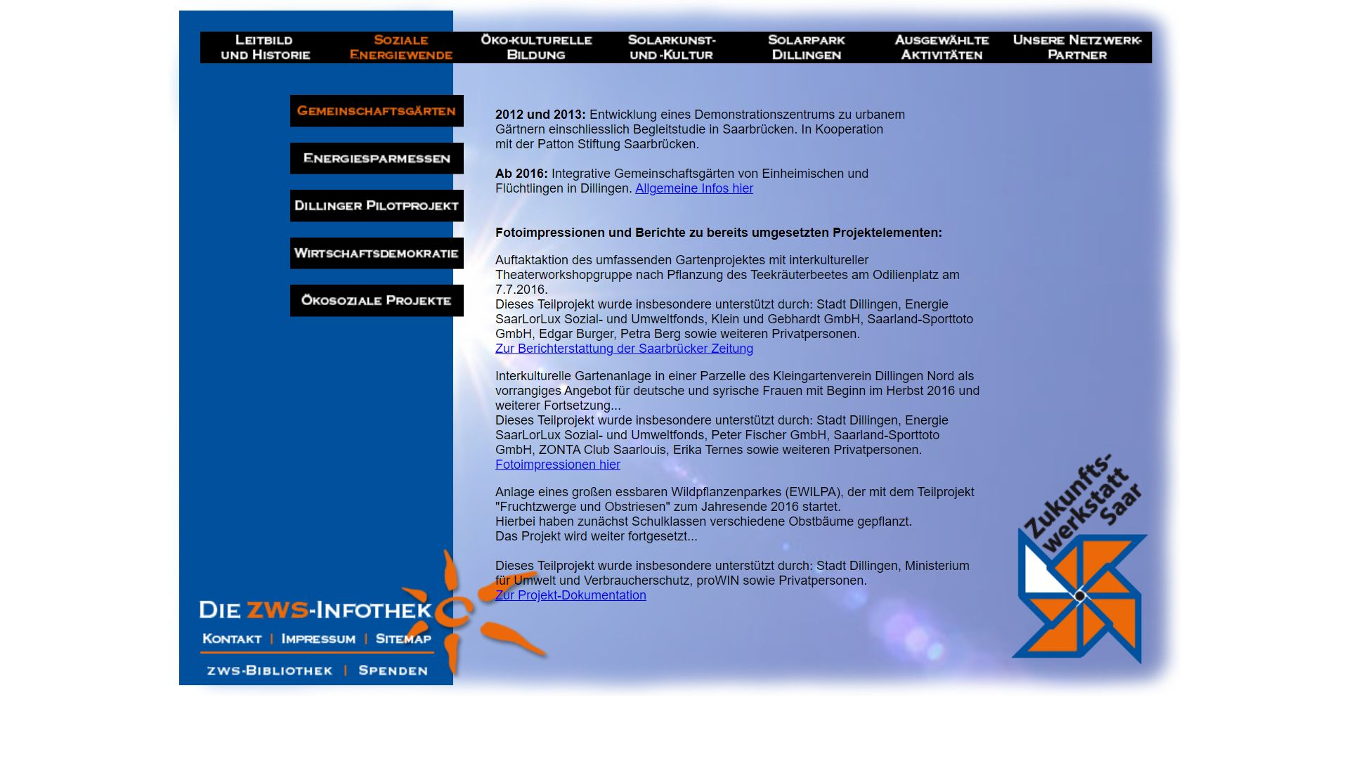 Dieses Teilprojekt wurde insbesondere unterstützt durch: Stadt Dillingen, Energie SaarLorLux Sozial- und Umweltfonds, Klein und Gebhardt GmbH, Saarland-Sporttoto GmbH, Edgar Burger, Petra Berg sowie weiteren Privatpersonen.