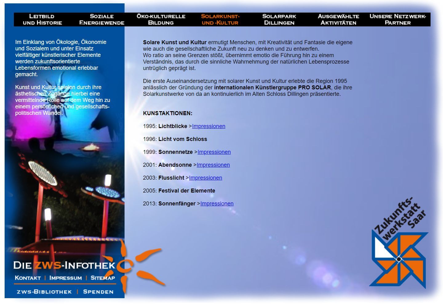 Die erste Auseinandersetzung mit solarer Kunst und Kultur erlebte die Region 1995 anlässlich der Gründung der internationalen Künstlergruppe PRO SOLAR, die ihre Solarkunstwerke von da an kontinuierlich im Alten Schloss Dillingen präsentierte.