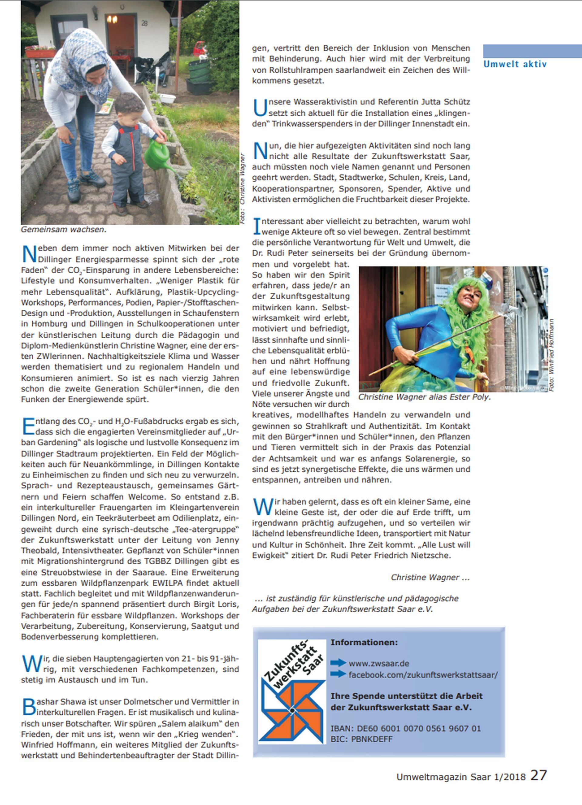 2018.01.31. Umwelt aktiv - ZusammenWachsen - Die Zukunftswerkstatt Saar e.V. lustwandelt zu Nachhaltigkeitszielen